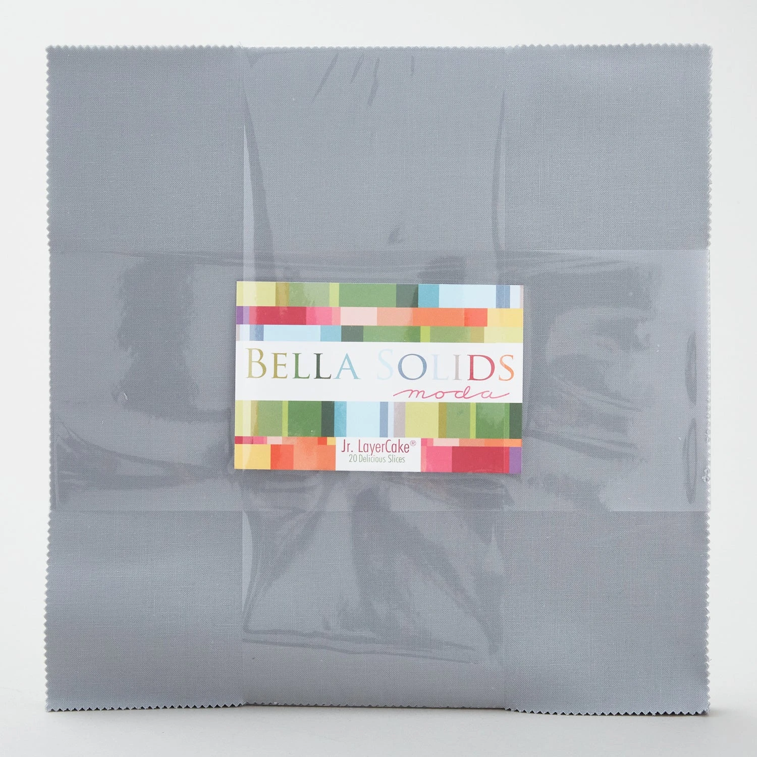 Junior layer cake of Bella solid gray 10” squares. Solids are fantastic because of the balance they bring to quilts! If you need to balance out your project, consider Bella solids from Moda Fabrics! When it comes to Bella, you’ll always find the color you need, whether it’s sangria pink or lemon yellow.