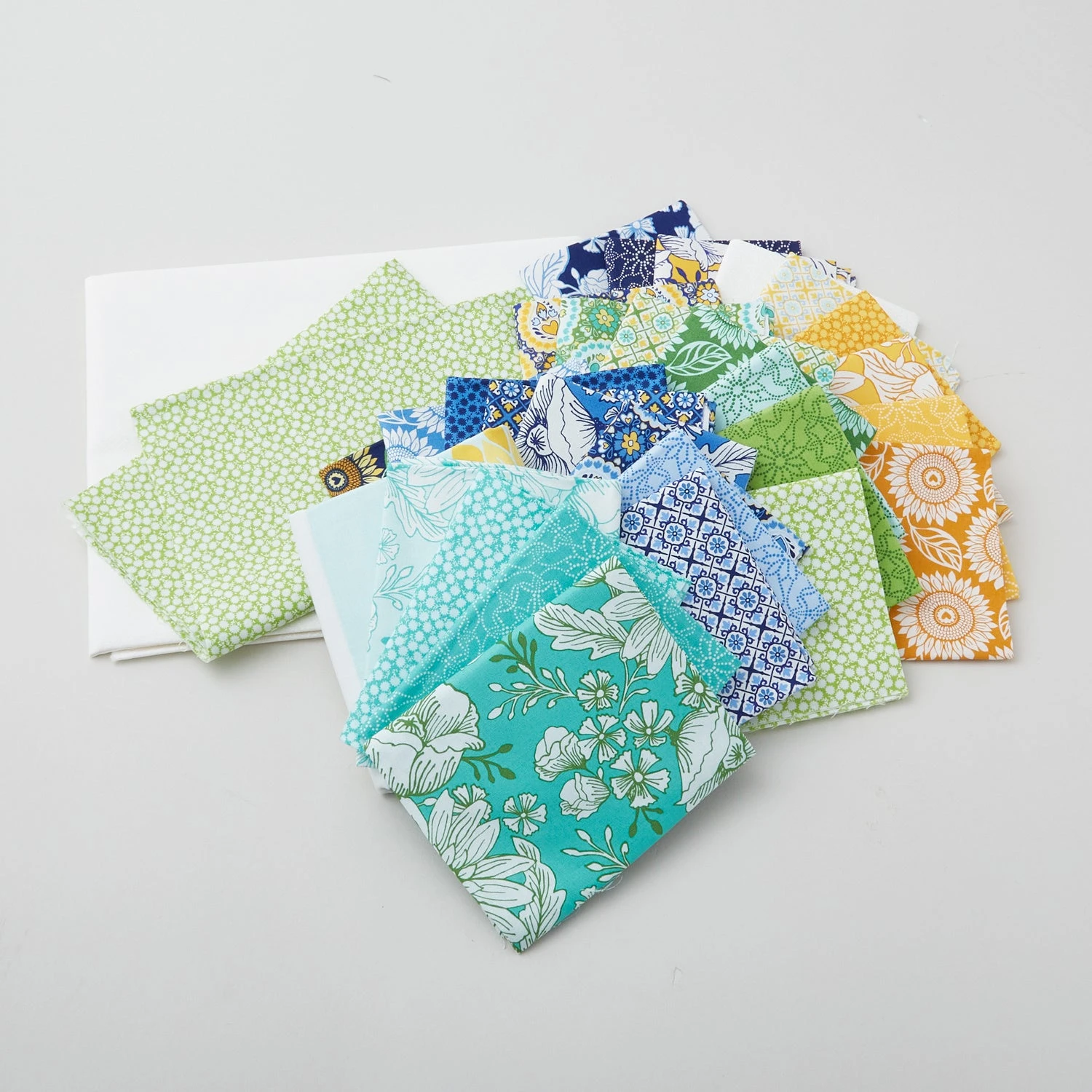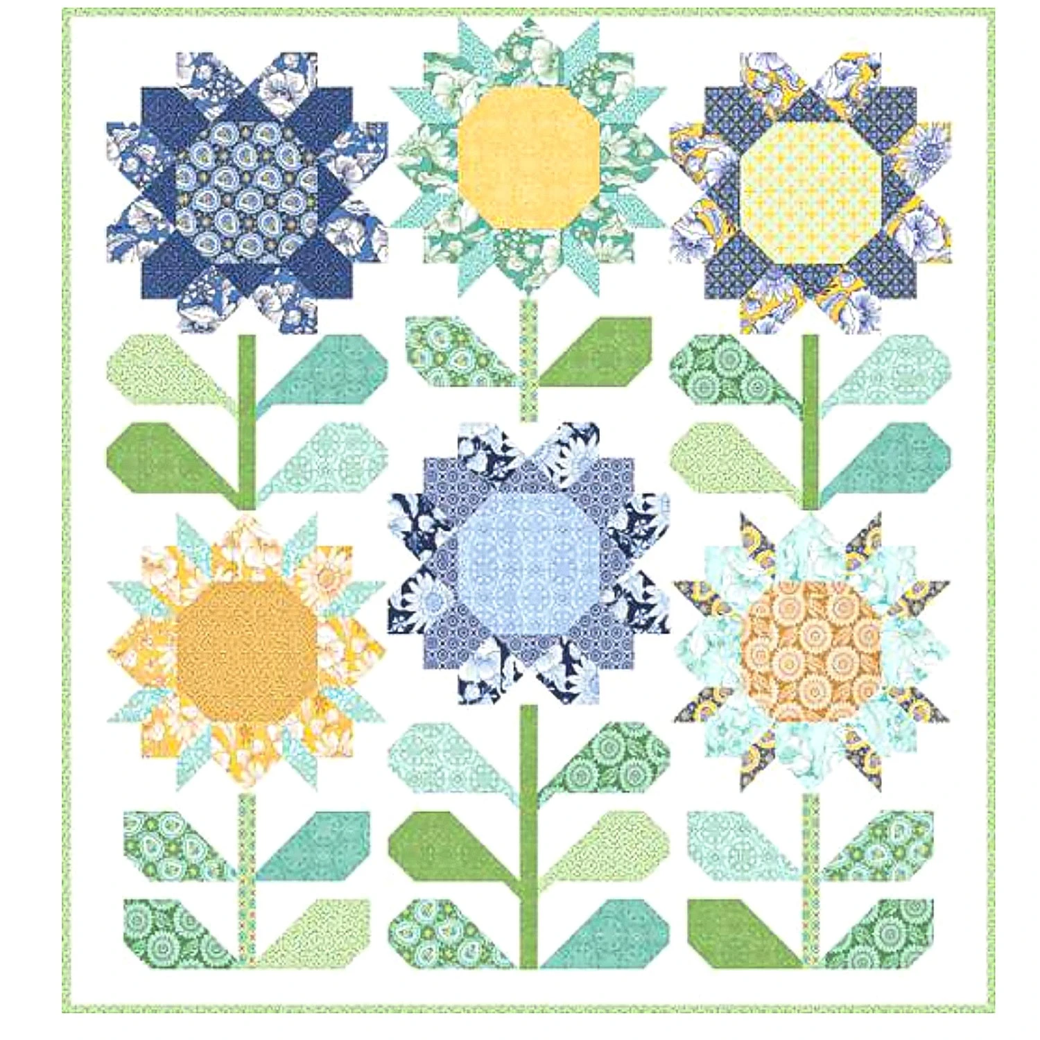 Watch your creativity bloom! The Bloom Quilt Kit features stunning sunflower blocks with patterned stems, leaves, and petals. This pieced kit designed by Kate Spain includes a pattern and Sunflowers in My Heart fabrics by Kate Spain for Moda for the top and binding. An additional 2-3/4 Yards of backing is required for the backing (not included). We recommend Sunflowers in my Heart – Provence Shamrock Yardage. GROW big or go home!