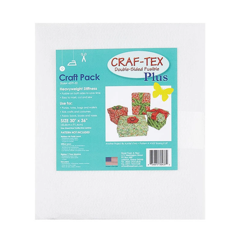 Craf-Tex Plus is a double-sided, heavyweight, fusible stabilizer perfect for using in handbags, totes, fabric boxes, and bowls. It’s stiff and holds its shape well so you can also use it in placemats, table runners, and costumes. Easy to mark, cut, and sew!