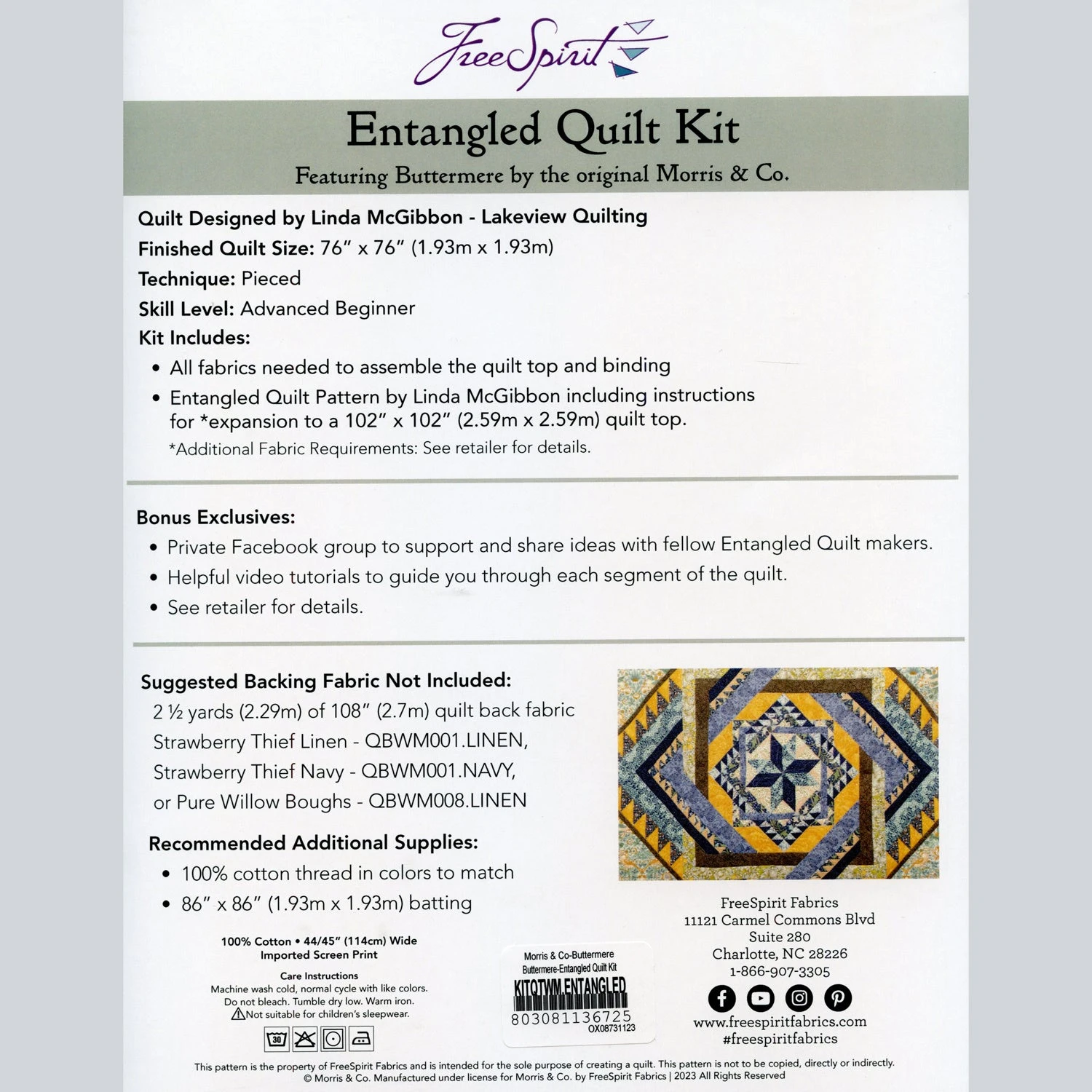 You’ll be tangled up in love with this gorgeous quilt! Made with fabrics from the Buttermere collection by Morris & Co. for FreeSpirit Fabrics, this pieced quilt was designed by Linda McGibbon of Lakeview Quilting. Kit includes the pattern and fabrics for the top and binding. Five yards of fabric, not included, are needed for the backing. We suggest Buttermere – Golden Lily navy yardage. Finished size 76” x 76”, with optional expansion to 102” x 102”.