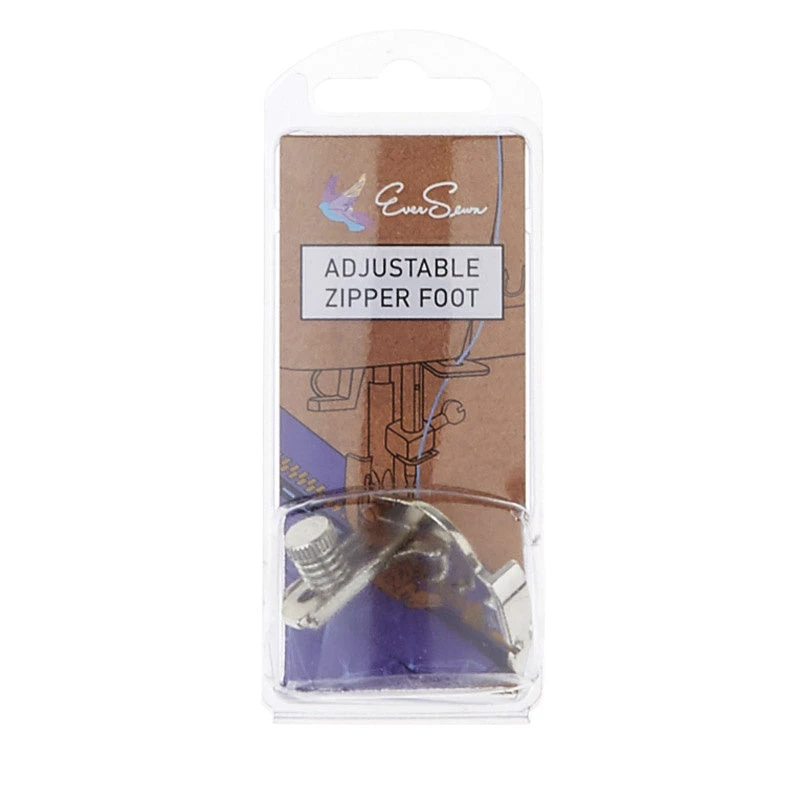 Now you can stitch on either side of a zipper without having to remove the foot from your machine. Simply loosen the spring loaded screw in the rear and move the foot to any position that is best suited for your project. Great for adding cording and piping to your projects too.