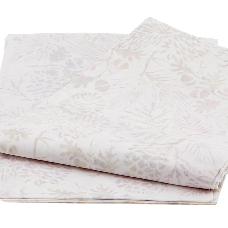 Off-white pine cones, pine needles, acorns, and branches on a white batik 2 yard cut of Festive Batiks fabric. Give your holiday project a batik twist with the Festive Batiks collection! These Missouri Star exclusive batik fabrics feature winter- and Christmas-themed prints on hand-dyed batiks certain to deck the halls with joy.