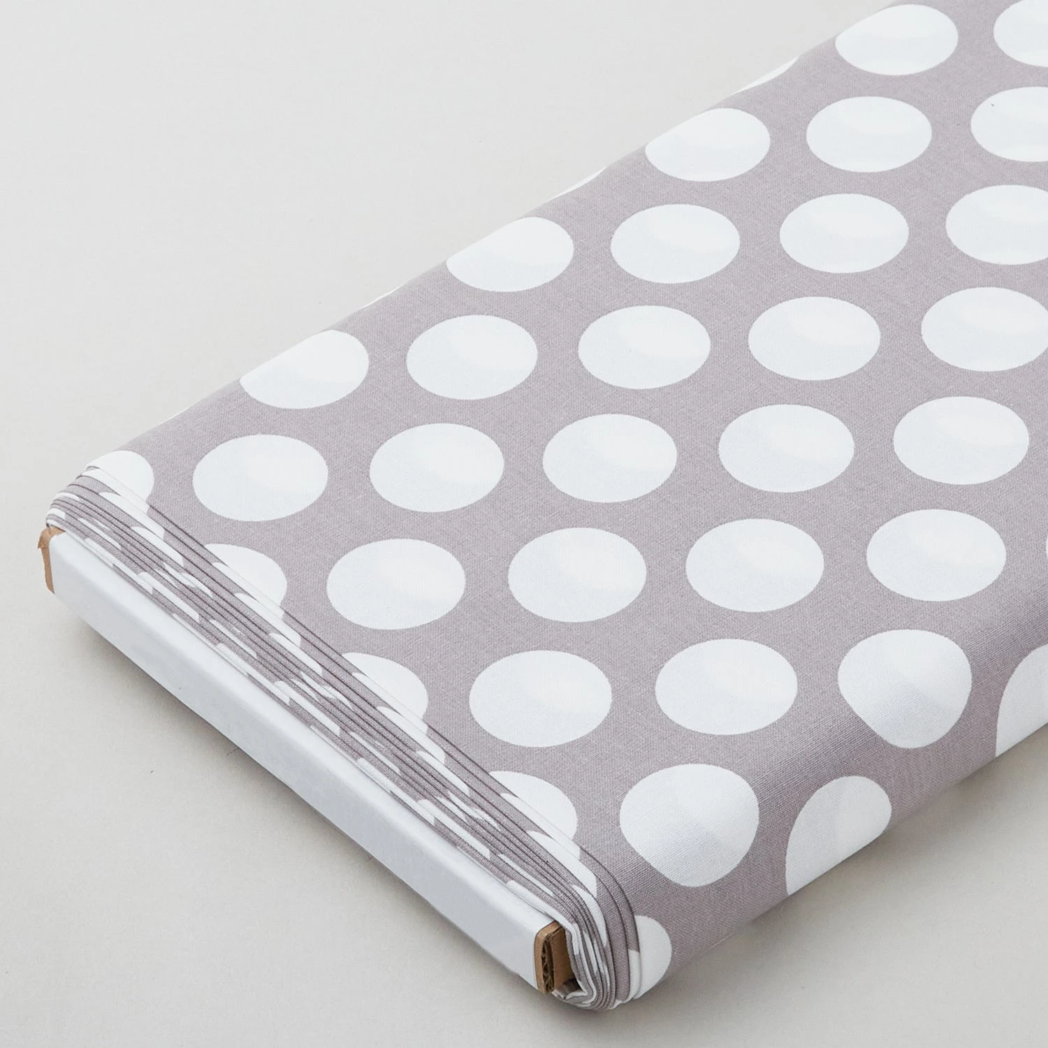 An 8-yard bolt of white polka dots on a gray background. Gray Matters from Camelot Fabrics blends neutral gray with sunny yellow in this pretty collection.