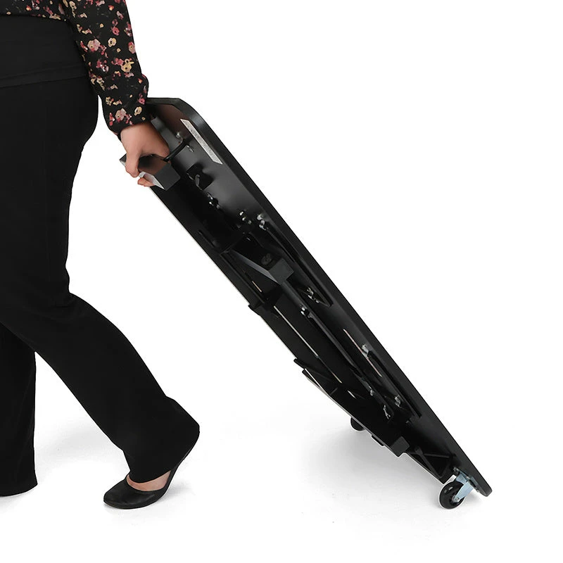 - Table folds flat and has two wheels for easy portability to class and retreats