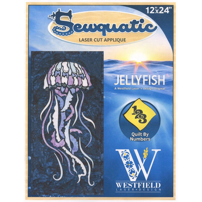 Bring the beauty of the ocean into your home with these Sewquatic series of laser cut pre-fused appliqué kits. The realistic jellyfish kit contains a pattern, a quilt-by-numbers template and precut pre-fused batik fabric shapes. You supply the background fabric, the binding and backing for this project. Be sure to visit the other kits in this series- you will want to make them all!