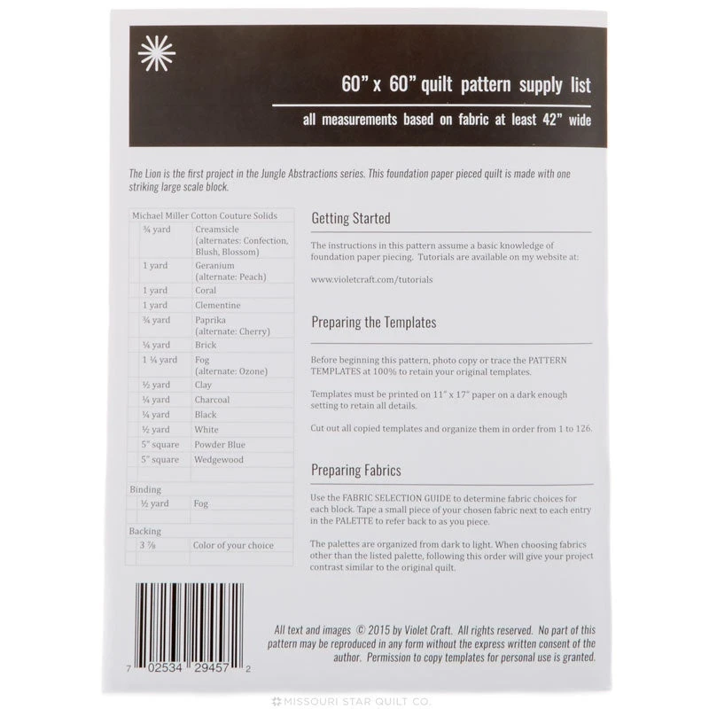 The Lion is the first project in the Jungle Abstractions series. This foundation paper pieced quilt is made with one striking large scale block.