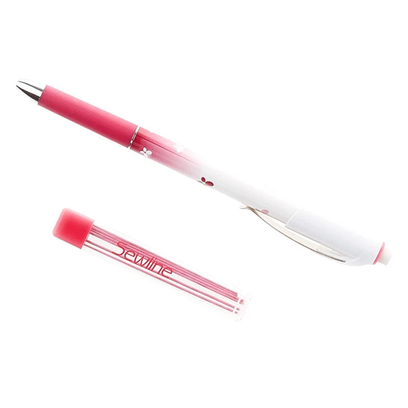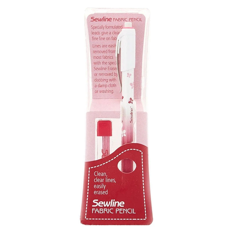 Mechanical fabric pencil for marking your fabric has ceramic lead which gives clear, clean lines that are easily removed with attached eraser or damp cloth. Lead refills included. Extra lead and eraser refills are available.