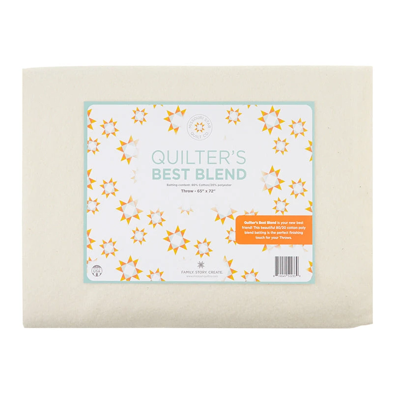 Missouri Star premium mid-weight 4.0 oz. needle-punched 80% cotton and 20% polyester batting. Excellent for hand or machine quilting and crafts. Can stitch up to 8″ apart.