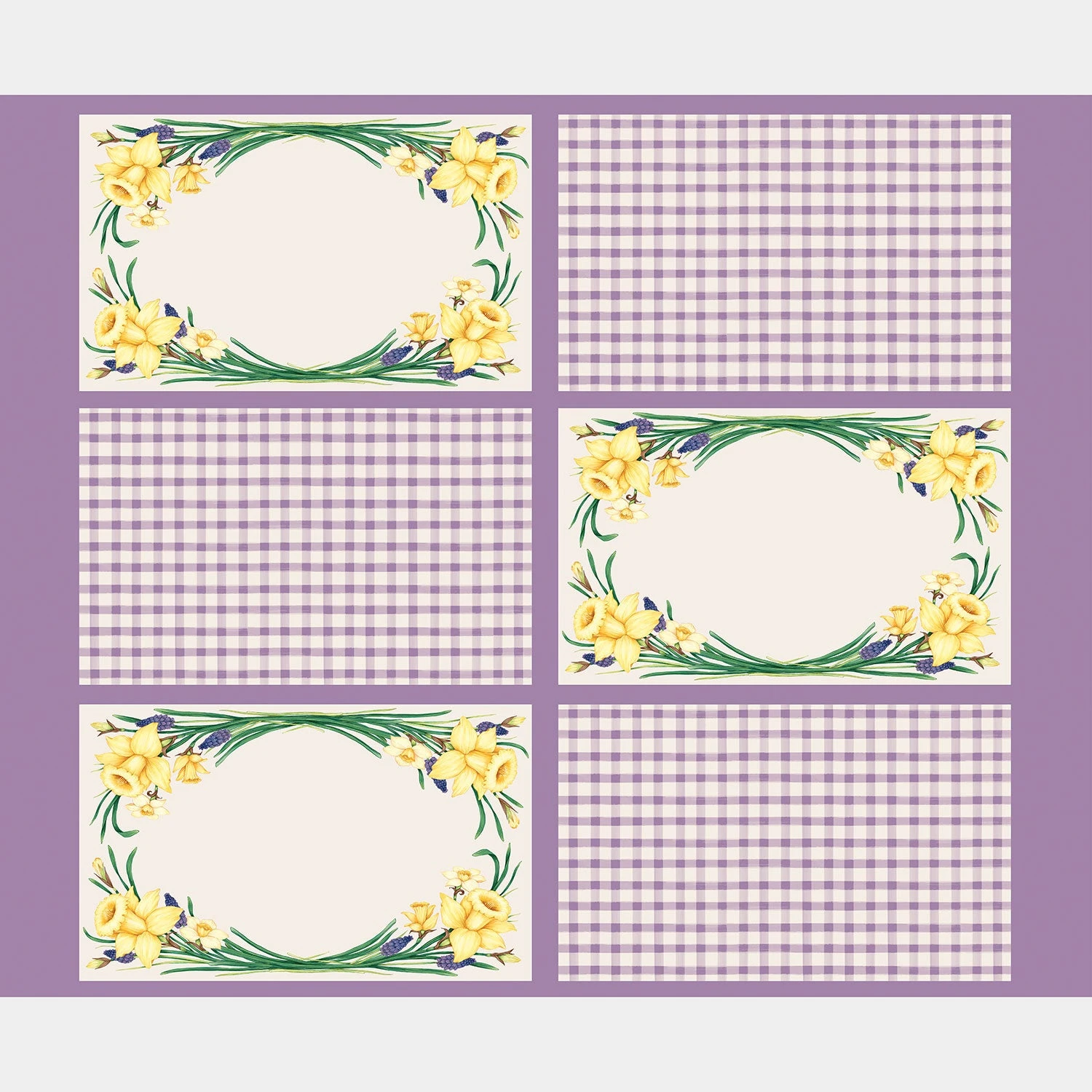 A panel of placemats for April with a daffodil theme. Pair this panel with the coordinating daffodil fabric for April. Hester & Cook for Riley Blake lends you a hand in your holiday and seasonal decorating with their collection of Monthly Placemat panels and fabric! Christmas, Thanksgiving, Halloween โ no matter what kind of placemats you want to dress your table with, thereโs a panel and coordinating fabric for each holiday and season.
