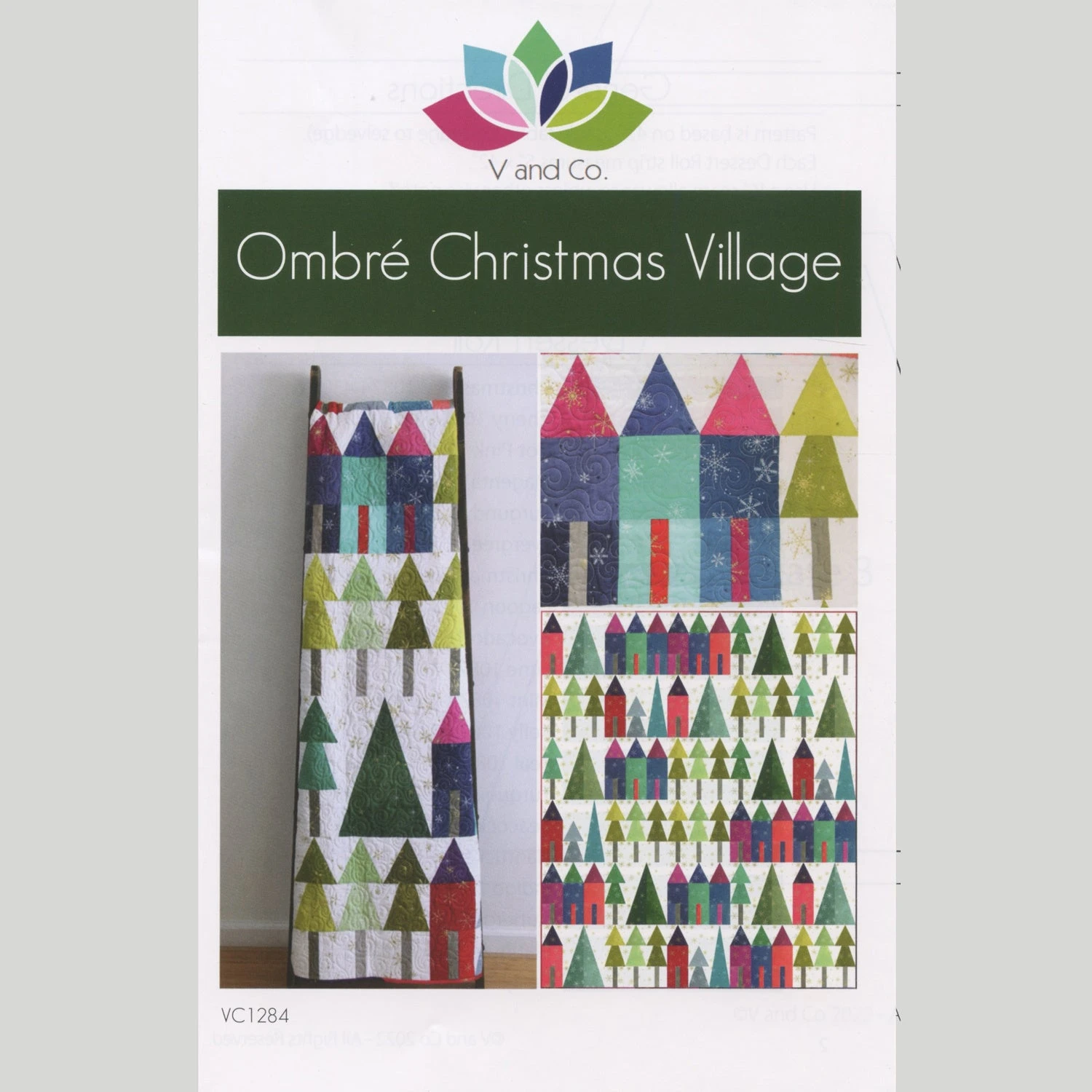 You’ll feel like you’re strolling through a quaint Christmas village when you make this cute quilt! The pattern, by Vanessa Christenson, has piecing instructions for the 67-1/2″ x 81″ quilt made with 5” strip sets or yardage. The pattern is intended for intermediate quilters who are confident with using paper templates and creating triangle units. The quilt show features the Ombre Snowflake Metallic fabric collection for Moda Fabrics.