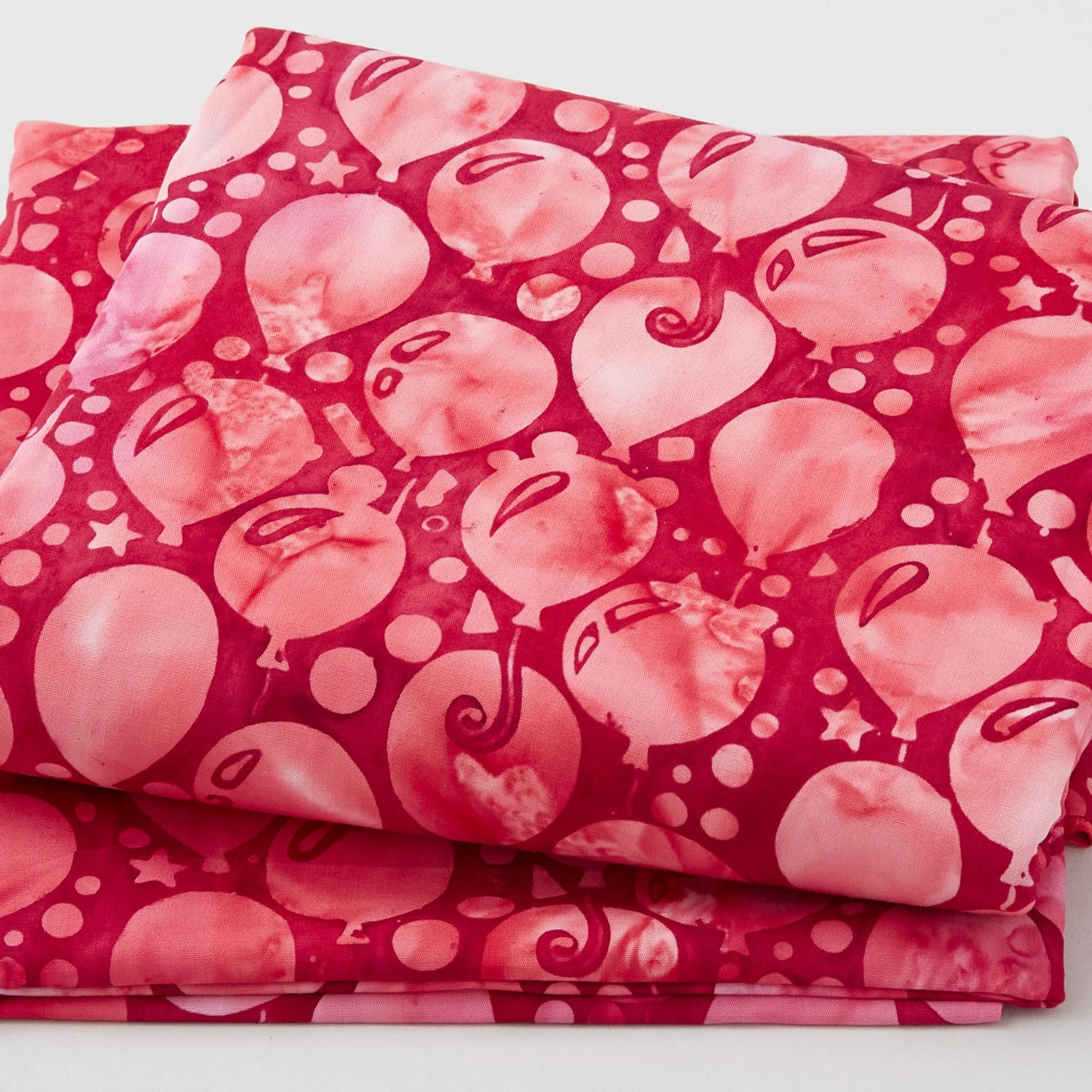 A 5-yard cut of pink balloons and dots on a magenta background. Celebrate! A whole rainbow of batiks is right here for you! Island Batik put together fun sprinkles, dots, streamers, and more in a spectrum of colors to create Rainbow Celebration. Pick up some of these lively batiks and have a party in your sewing room!