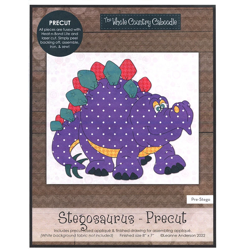 Hear that dino-ROAR! Appliqué the easy way with laser-cut fabric shapes. Includes precut fused fabric pieces and finished dinosaur drawing for assembling the Stegosaurus design. Background fabric is not included.