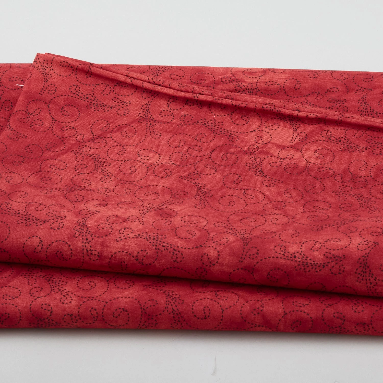 A 3-yard cut of red wide backing with black “thread” lines. This backing from Blank Quilting Corporation is sew pretty! Swirling lines look like thread stitched in a beautiful quilted design.