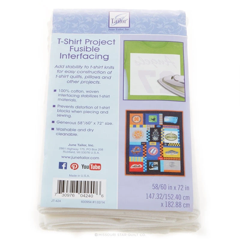 Woven and fusible interfacing provides stability to T-Shirt fabrics for sewing into beautiful T-Shirt quilts. Prevents distortion of T-Shirts when piecing and sewing.