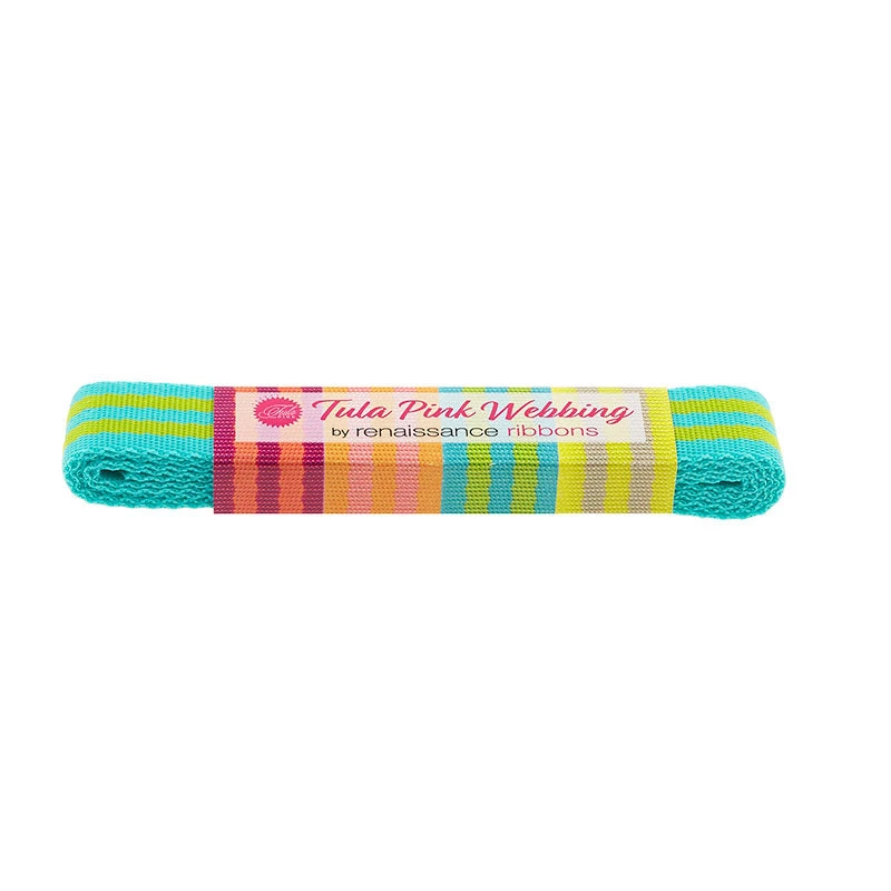 Add a touch of Tula to your project with this 2 pack of beautiful lime green and aqua blue, 1″ nylon webbing!