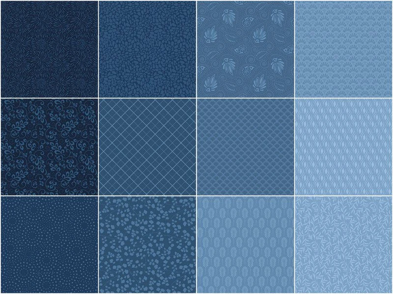 Blue fat quarters of foliage prints, paisley, floral scrollwork and much more. Wilmington Essentials – Denim Jacket is like an homage to the iconic shade of blue most of us can find in our closets. In this Wilmington Prints collection, you’ll find a variety of prints, ranging from delicate leaves to intricate paisley — all in lovely shades of denim blue!