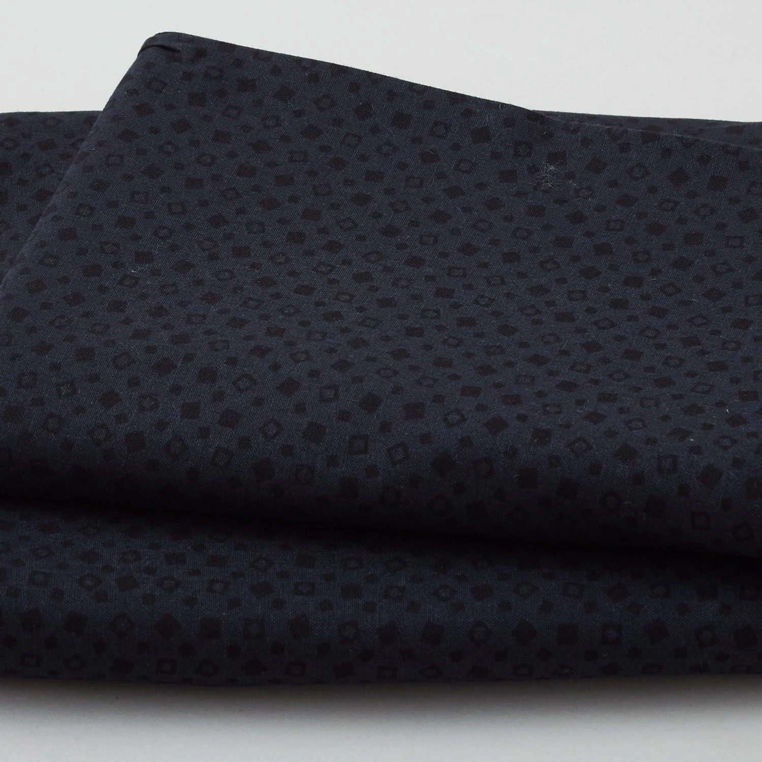 A 3-yard cut of tonal black squares tossed on a black background. From the Wilmington Essentials line of Wilmington Prints.