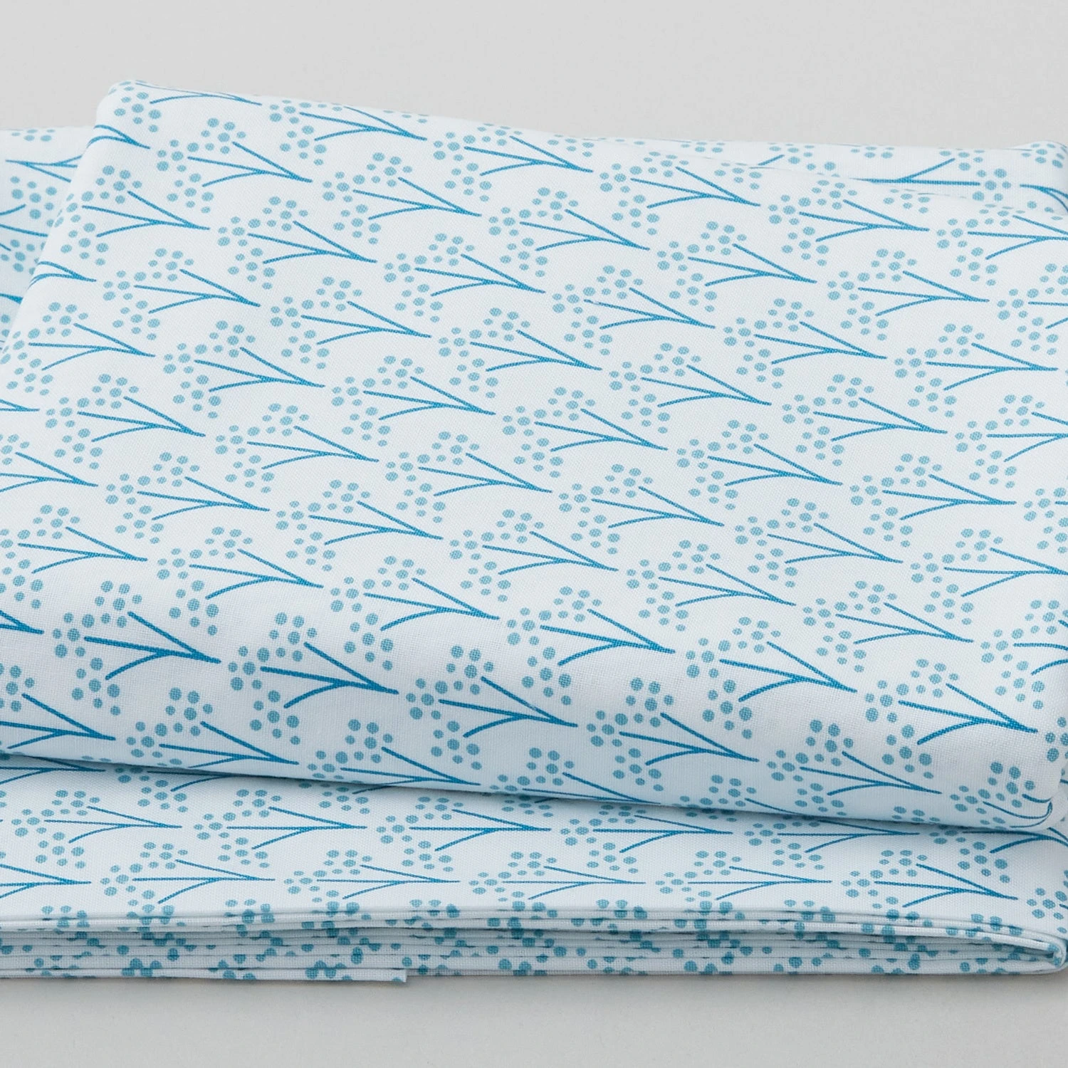 A 3-yard cut of blue trees with dotted leaves on a white background. Pretty flowers and trees fill Windsong Meadows from Wilmington Prints. The blue, teal and gray prints come together to create a beautiful, cool color palette.