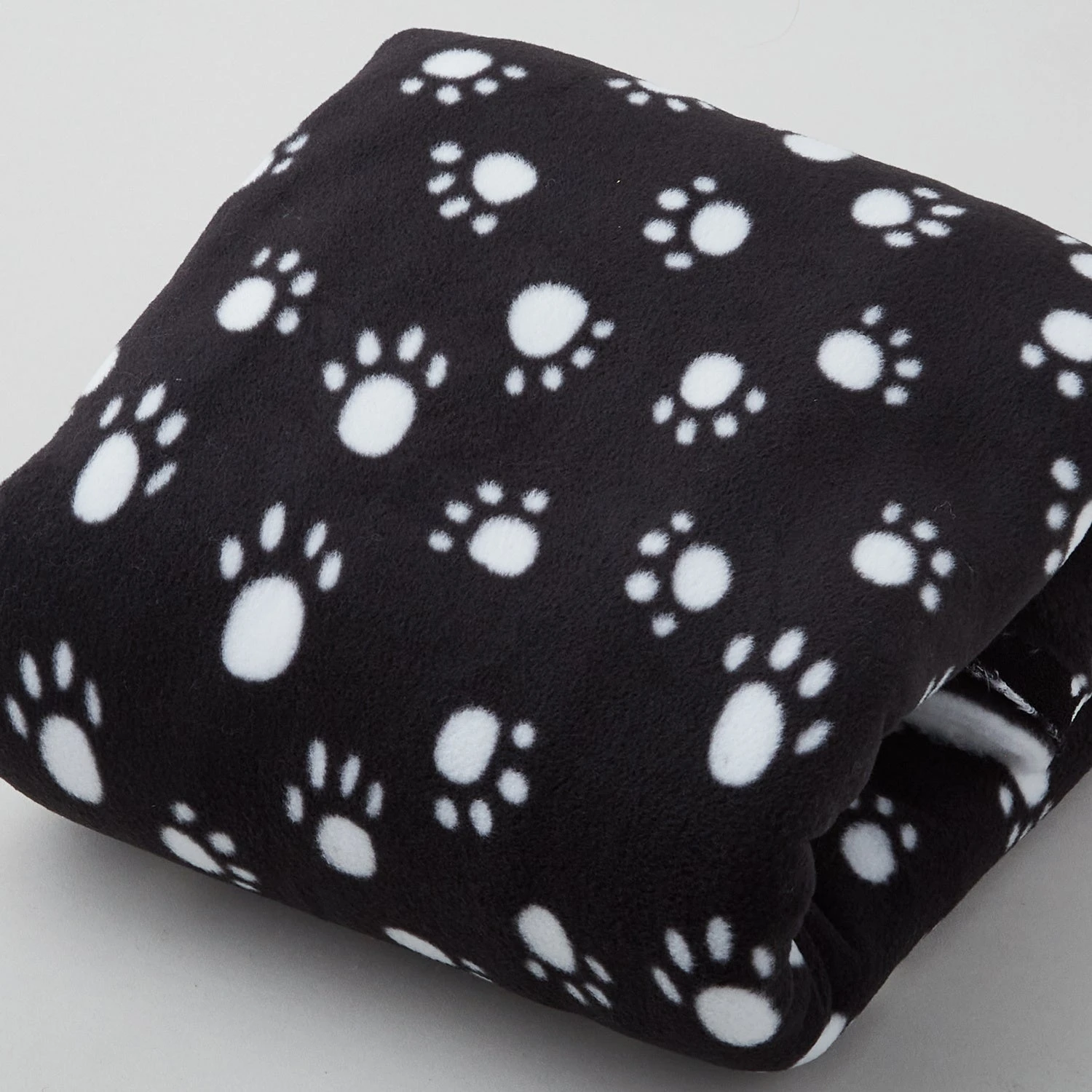 A 2-yard cut of velour fleece with white paw prints on a black background. When cold winds blow, warm up with WinterFleece! This soft, breathable polyester fleece comes in a wide range of solid colors and great prints, too. It features an anti-pill velour face with a brushed back. Great for apparel, accessories, blankets, pet products, and more!